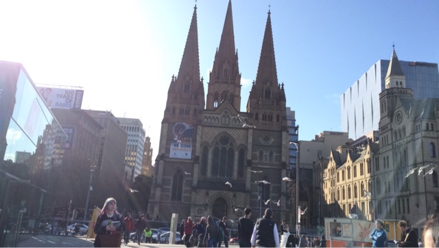 Sai de lá, peguei o tram e fui trabalhar. De lá pra cá, passei no 7 Eleven, comprei meu muffin e chocolate. Parei na Fed Square pra esperar minha hora chegar. Meu amigo australiano me ligou, gente que fala e te enche de energia, me pilha e alegra. “Take care, chica!”. Logo Welcome dá sinal de vida, e eu agradeço por nunca me sentir sozinha…