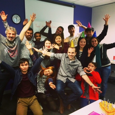 Como por exemplo, por que é difícil dar tchau? Por que tem gente que nos marca com pouco e o pouco é tanto que saudade não cabe na contradição pequeno/grande eu? Hoje a aula foi assim. Cheio de tchau e até logo que não sabemos se um dia há de se encontrar e virar “oi”. Reticências. Minha amiga da risada engraçada, depois de me fazer sentir uma criança pelo meu tamanho (precisei subir num banquinho pra tirar uma foto decente com ela ahahahah), está voltando pra Alemanha e outra amiga pra Tailândia. Meu amigo de Omã se formou e já não me acompanhará na escola… Foi o último dia de aula com meu professor. E de novo tudo muda. A gente roda de novo. Nessa arte das mudanças e reticências que vêm antes das frases. Tá por vir. Dia de festa! Celebrar os bons momentos antes da partida. Com direito a bolinho, velas, Tim Tam, chapeuzinho, só faltava um aniversariante pra falar que era festa de aniversário! Hahahaha. Depois de agradecer toda a paciência, carisma e amizade do professor que vai fazer falta. Juro, cada um melhor que o outro aqui! São todos tão amigos! Animados e diferentes uns dos outros. Tão únicos. Como cada um vem a ser. Último dia daquela classe foi como tinha de ser. Gafes. Palavras erradas na hora e contexto errado. Falando nisso, tome muito cuidado ao pedir uma Coca Cola aqui! Repete comigo, Coke!!!! Hahahahaha só pra não cometer a gafe que meu amigo cometeu e rendeu aquela crise de riso, ainda mais quando a alemã começou com aquele risada que só ela tem. Ai pronto! AHHAHAHAHA. Foi reticências atrás de reticências. Hahahahah.