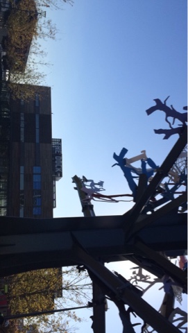 Hoje acordei com meu primo me mandando uma música: Tragedy + Time – Rise Against. Eu lhe tinha dito que por vezes não acreditava estar aqui. E a música responde: “and sometimes you have to go back to know just where you have been”. Um passo para trás. Dois para frente. Um pra frente e você chega na Lua. Ao menos sai do lugar. A sensação não é apenas de estar reconhecendo de onde vim e nem onde vim parar. É maior. Tá mais para saber quem sou. Era disso que eu falava hoje com uma amiga enquanto pegávamos o trem errado com a intenção de ir pro Botanic Garden, acabamos conhecendo a biblioteca da Docklands, depois fomos pra Fitzroy Garden, Yarra Park, City of Melbourne Livrary, aproveitei pra fazer aquele cadastro muito conveniente agora que tenho que me preparar para as provas Ahhahaha. O assunto era autoconhecimento, autoconfiança, nossa construção de personalidade. A gente é como um quadro a ser pintado. Você primeiro estuda suas medidas. Suas intenções. Escolhe suas tintas. Seus pincéis. As cores. Suas técnicas. Usa o tempo a seu favor. Assim como a falta dele também. No fim, esse quadro não tem prazo pra ser finalizado. Na verdade ele está sempre mudando. Mais e mais tintas. Iguais às paredes grafitadas da Hosier Lane ali na Flindres St. Uma obra por cima da outra. Quando vê somos um amontoado de tintas que esbanjam uma combinação intrigante de cores. E por mais que alguns traços se assemelham a de outros. Somos diferentes. Hoje peguei o tram e ao olhar pra fora me senti como quem está olhando um aquário cheio de espécies diferentes. Aquelas feições. Os estilos. Os gestos. Os sotaques. As maneiras de se apresentar. Tudo diferente do que estou acostumada a observar.