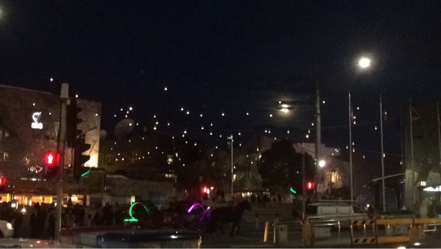 Resumindo: ligação da flatmate dizendo que deu tudo certo e que já estava pegando o avião pra Nova Caledônia, “tudo de bom, sentirei sua falta”. Ligação de quem se importa e oferece um ombro amigo (amo essa mania que a galera daqui tem de ligar, essa geração de apenas mensagens de textos não tem lá toda tua graça). Olhares que se falam e riem juntos na sala de aula. Gargalhadas que param, desconcentram, intrigam, atraem olhares curiosos e vira coletivo. A lua na Federation Square entre as luzinhas que deixam a noite mais quentinha. O trabalho que faz as horas passarem rápido. A compreensão de quem perdoa e se coloca no lugar. A saudade que na tentativa de ser aliviada, só aumenta. O casal da Sourthen Cross que só se olhava e ali abraçados por tempos, só os dois, no meia da noite, na estação já vazia, os poucos que passavam não conseguiam desviar o olhar, a cena mais linda, de tão simples, como se ali o tempo pra eles tivesse parado. Até que não tá tão frio.