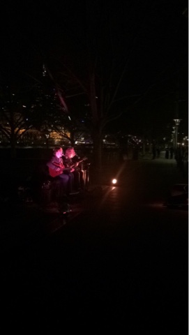 Hora de ir pra casa. Espera, tem alguém tocando. Amo essas pessoas que tocam nas ruas. E deixam as noites de frio mais quentinhas. Sentei pertinho da dupla que cantava John Mayer. Telefone toca. “Vem pra Brunswick”, festa, amigos e risadas. “Passa o endereço, estou a caminho!”. Mais música. Mais gente nova. Mais conversas despretensiosas. Mais pessoas dançando e criando seu próprio ritmo. Mas papo furado e risada sem motivo. É disso que preciso. Sentir o agora falando comigo. Voltei pra casa. Minha bolsa lotada, de todos bons sentimentos. Recarregada. Bateria 100%.