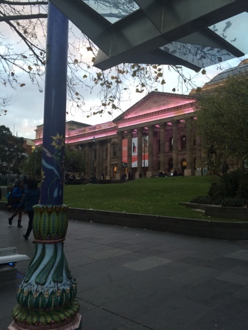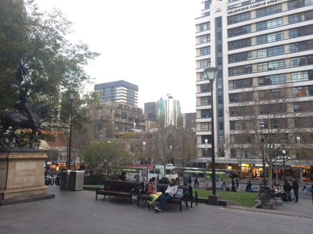 Já imaginou brincar de mímica com verbos estáticos? Tipo fazer com que os outros entendam o verbo precisar, duvidar, por momentos eu acho que essa aula se trata de um se vira nos 30! Cada uma que esses professores inventam! Hahahahahaha. E mais uma vez a comunicação se contorce toda para fazer a ponte. Estica. Entrega o que queria. Recebe o que precisava. E eu ainda mais encantada com as palavras ainda que não ditas. Hoje foi dia de analisar meu Gap Year. Colocar tudo no seu lugar. Fui parar na State of Library of Victoria ali no Melbourne Central. Mesmo livre de distrações. Eu me distraio. É impressionante. Abro o livro. Pego a caneta. As pessoas passando e a introdução de hoje foi feita ali. Repare. Aquele tanto de gente que é como vitrine e passam sem necessariamente deixar algo pra trás. Mas me deixam dúvidas. Não são apenas caras e roupas. Mas a gente segue. Observando e se questionando. Seguindo.