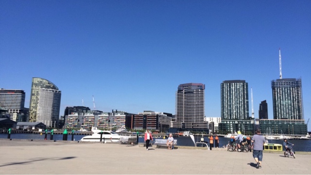 This arvo, ainda andei pela Docklands com uns amigos… O dia estava lindo, sol deu as caras por aqui de tarde e isso vai se tornar um pouco raro daqui uns dias pelo o que ouvi, então tem que aproveitar, certo?! Boa companhia é o que não anda faltando! T.A. (Thanks you, mates!) hahahaha colocando as gírias em dia pra me sentir um pouco aussie, um pouco mais, porque já me sinto parte desse lugar!