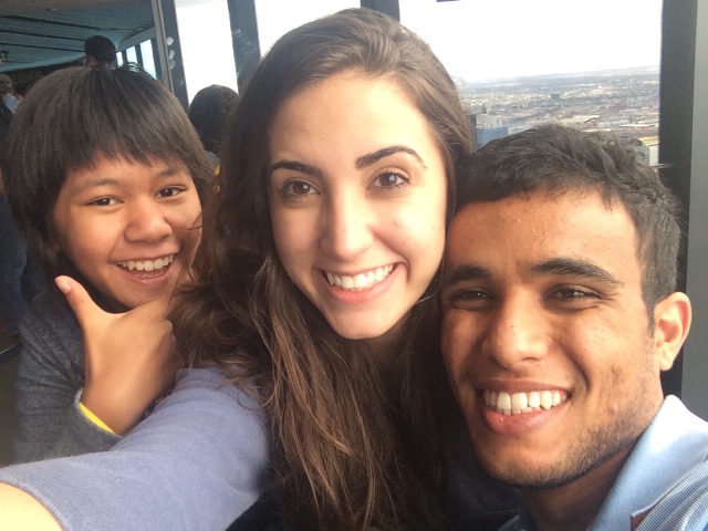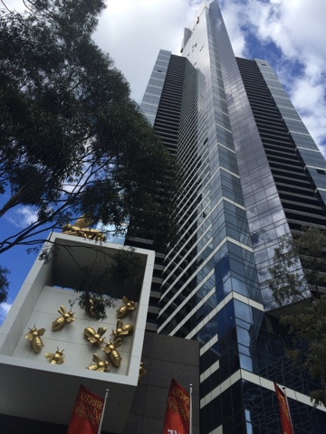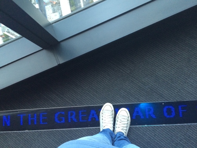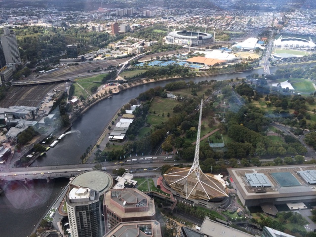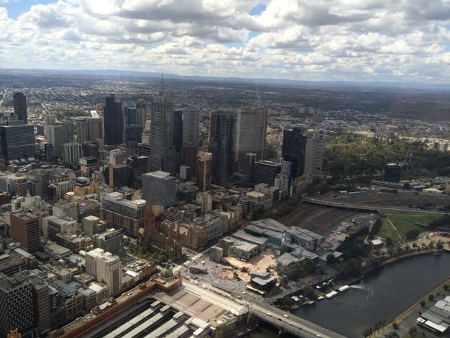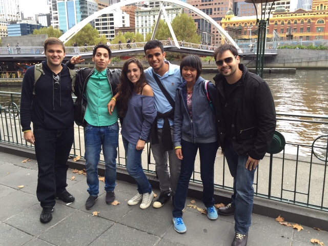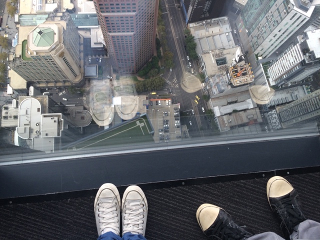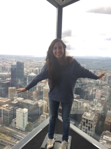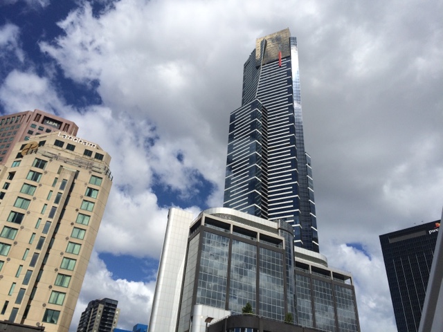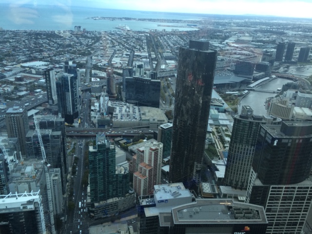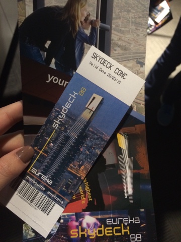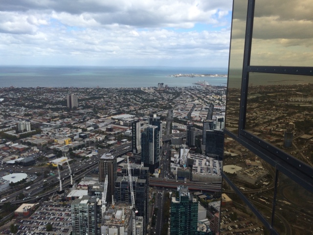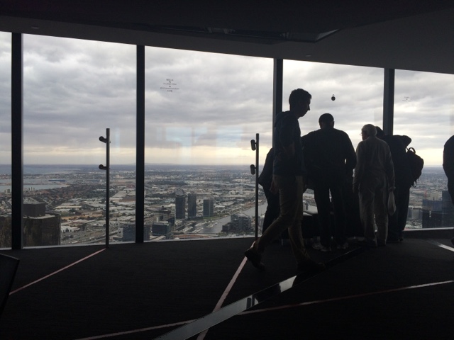 Na escola foi tudo bem! Gosto muito do jeito que os professores ensinam! Sempre de forma dinâmica e interagindo com todo mundo. Achei super engraçado um cara na escola dizendo ter pensado que sou grega! Oh louco! Hahahahaha Me juntei com uns amigos e fomos todos pra Eureka Skydeck, um famoso prédio que fica em Southbank. Ele tem 88 andares e você chega no último em 30 segundos de elevador! É brincadeira? Hahahah A vista é de deixar seu queixo no primeiro andar! Dá pra ver Melbourne inteira de lá! E pelo que entendi dá pra ver até a Tailândia! Sério! Hahahahhaha Tudo de vidro! Chega dar agonia! Hahaha No grupo que fui tinha Brasil, países árabes, Tailândia, imagina… Hahahahah Era risada o tempo todo e selfie por todos os lados! Era brasileiro aprendendo a falar árabe, era árabe falando português, né “carajo” HAHAHAHAHA