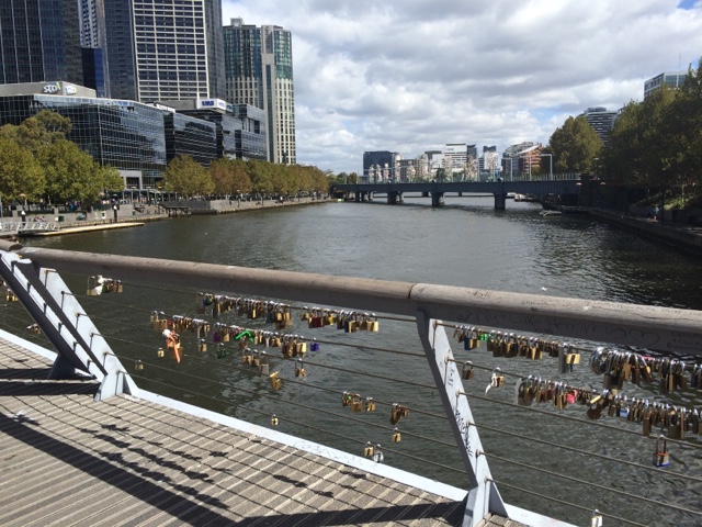 Conheci a Love Bridge, que é parecida com a da França. As pessoas vão lá e colocam cadeados. Bem fofo, ainda mais no cenário ali do Yarra River! Ainda quando passamos por lá, tinha um garoto tocando Riptide do Vance Joy, voltei ou não feliz pra casa?