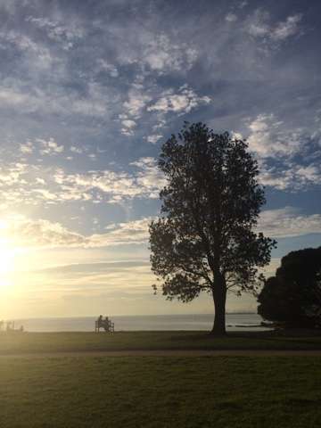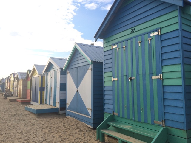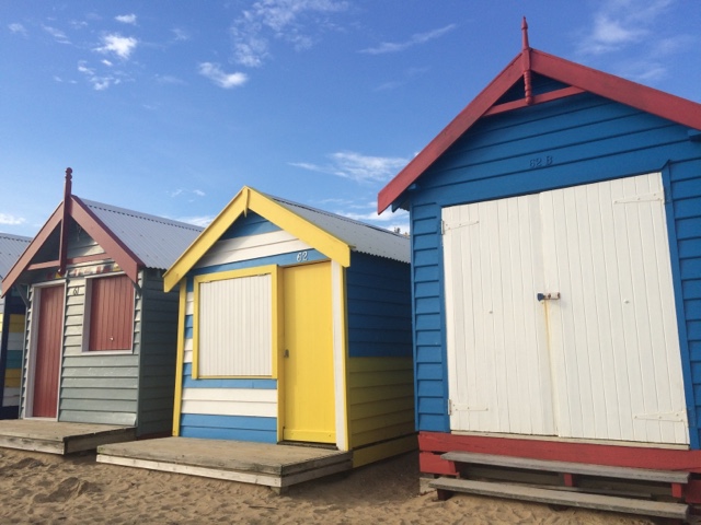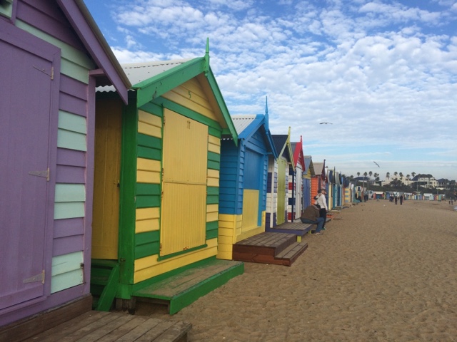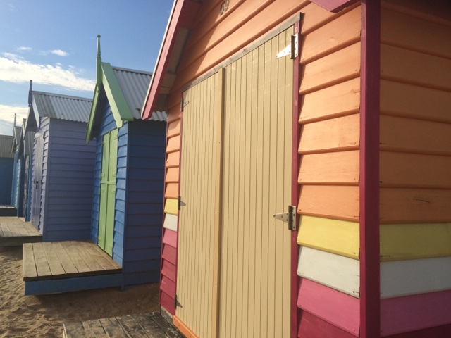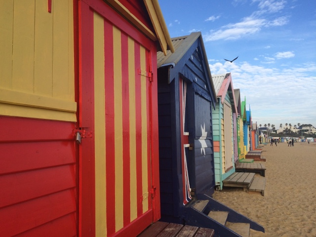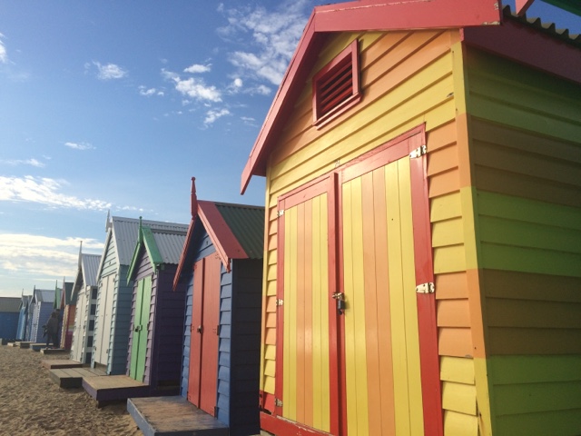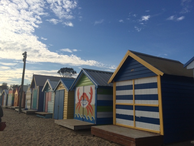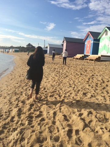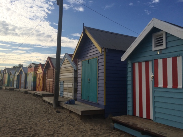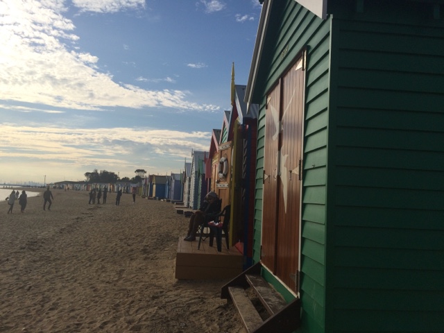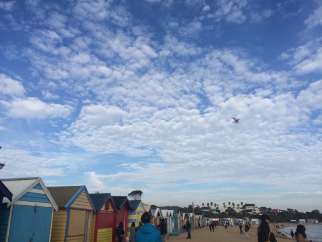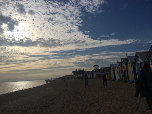 Fui parar em Brighton Beach uma área praiana na Baía de Port Phillip. Situada em um dos subúrbios mais elegantes de Melbourne. É conhecida pelas icônicas e caríssimas casinhas, são mais de 80 delas, todas coloridas e com um estilo rústico. Formam uma fileira que dá ainda mais cor à praia. Aquele lugar transmite uma coisa tão boa. Parece um quadro. O pôr do sol ali então…