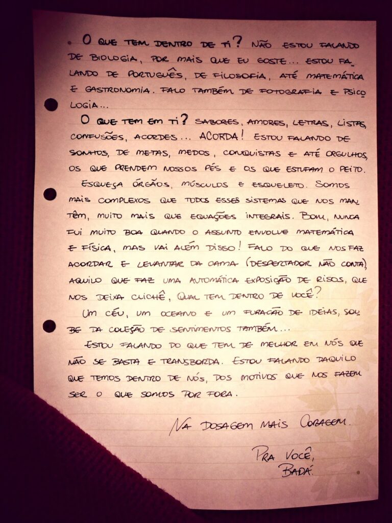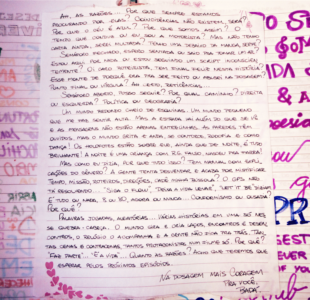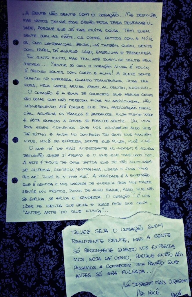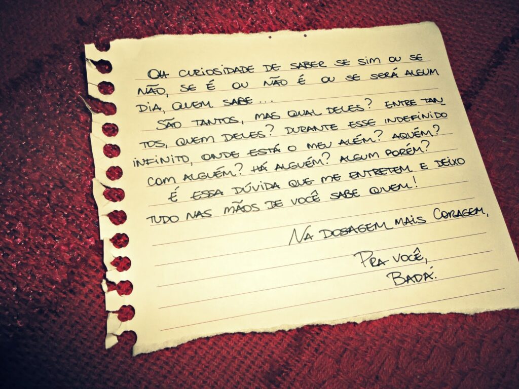 Me remete. Te destino. Eu presente. Você, instinto. Quando escrevo, então eu sinto. E vice e versa. Verso e cia. Nós. E poesia. É a vida. Concluímos. Essa troca. É linda.