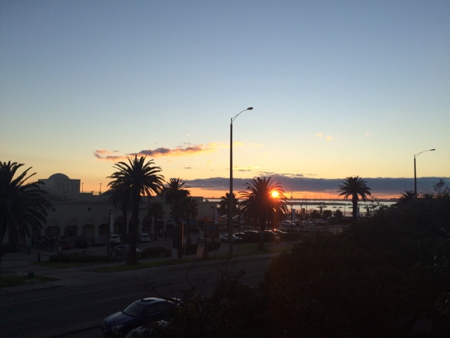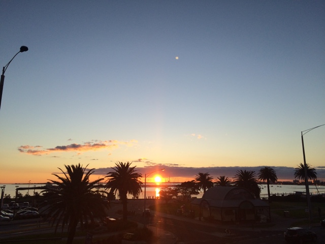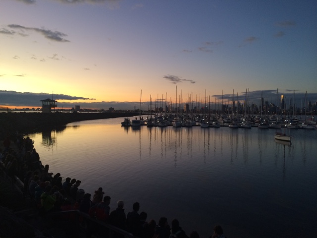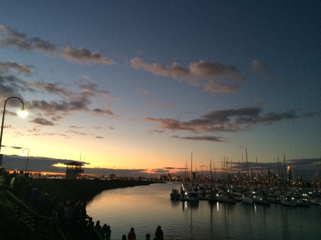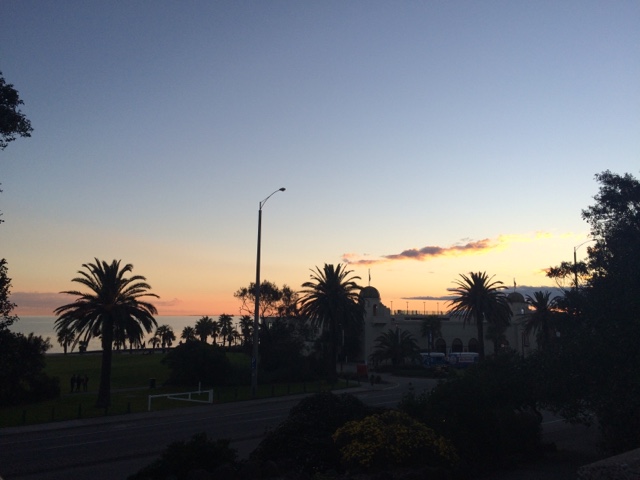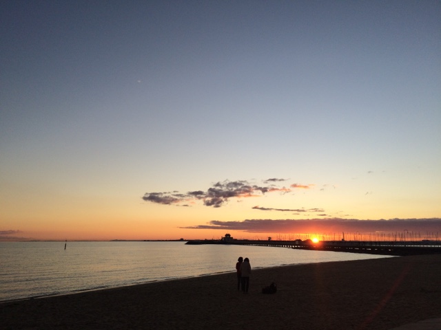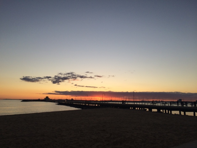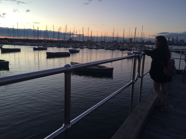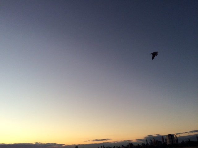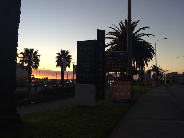 Acordei com o sol batendo na porta. Uma conversa gostosa que te faz querer ver o mundo lá fora. Almocei com meu primo, me vesti. Tá na hora de ver o dia. Quero ver mar, gente, areia nos pés e pôr do sol. A caminho encontro uma amiga. A conversa que lhe conforta e faz cafuné. Me despedi e segui meu caminho. Eu e eu mesma. É tão engraçado esses encontros não planejados. Amo essas espontaneidades que nos faz pensar no acaso ou se era pra já? Segui pensativa. Amo gente que me provoca e intriga. O sol vinha em minha direção. E me permiti aproximar. Ai St Kilda, tu me apaixona. Andei na beira do mar. A liberdade tocava meus pés. O sol me beijava. Era um caso de amor lindo. Só nós. Andei por ali. Começou a lotar de gente. Os olhos todos voltados para as pedras do píer. Os pinguins começaram o show. Todas as câmeras voltadas pra eles. Que vista. O céu colorido. Me enchia de cor. Logo o Welcome chegou pra recepcionar o dia comigo. Fomos jantar no Schnitz em homenagem a nossa amiga. Comemos uma parmegiana que fez o dia ainda mais saudoso. Prato predileto do meu favorito. E como o meu amigo disse, estamos em dieta. Que venha um bolo de sobremesa. Hahahaha. Os planos. As ideias. Rimos pra esperança. Pode ser que tenha muito sol por vir. “One little dumb dumb in the street” hahahaha. E ele me contando as histórias de quando ele e o amigo pensavam muito em algo e então acontecia. Eu ri. Mas aquilo ficou em mim. Pensei. E repito. Insisto. Vai que ele está certo. Vai que esse é o segredo. Antes de dormir, aquela mensagem que me fez sorrir. A notícia que traz amor e esperança. Já pensou? Pensei e criei todo um cenário! Hahahaha. Tá tudo pronto. Talvez ele realmente esteja certo! Se não está, ao menos ao caminho segue!
